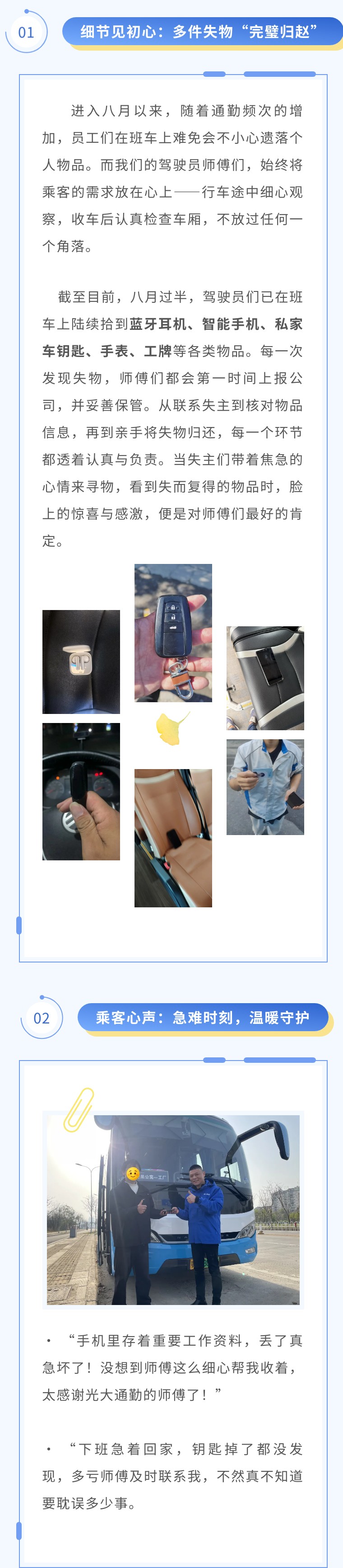 若您在通勤中不慎遗落物品,可随时联系当班驾驶员或拨打公司服务热线,我们会全力协助您找回失物哦~